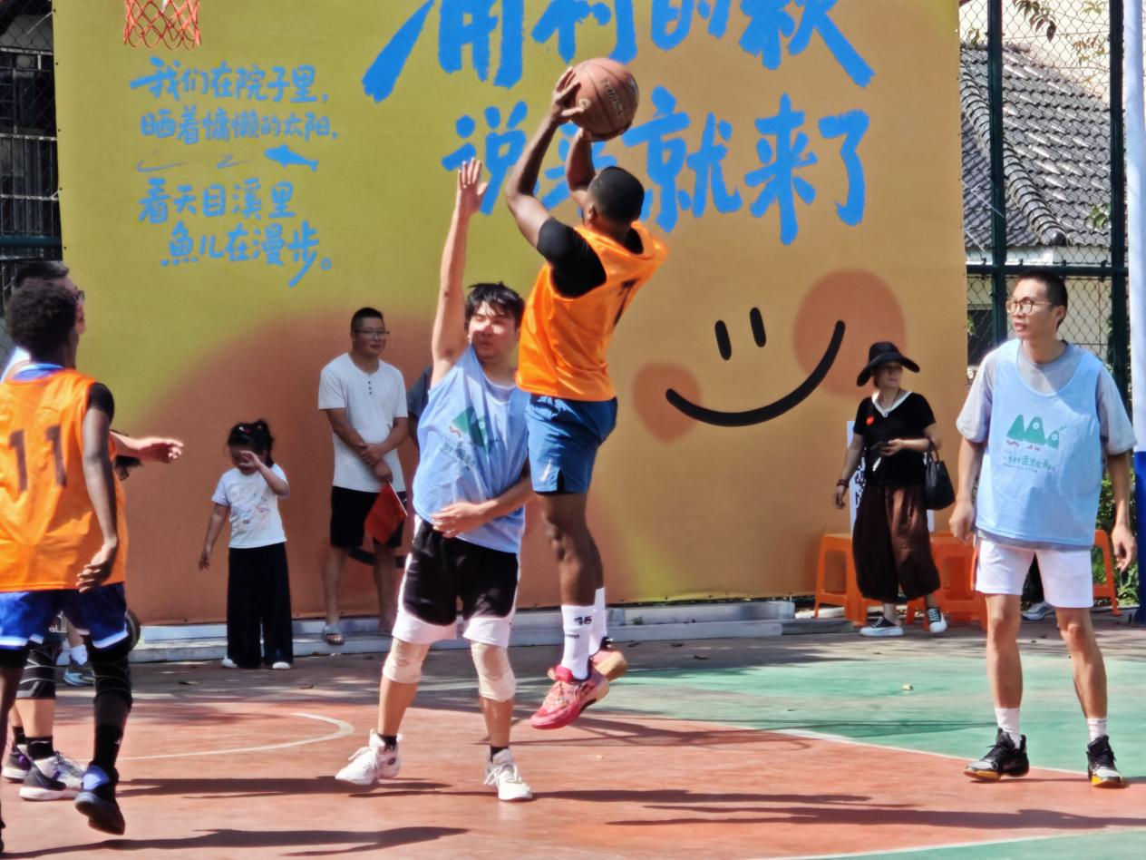 除文化互动外,篮球场上还上演了一场精彩纷呈的“涌村村BA斗牛赛”。留学生与本地青年展开3V3对决,双方积极跑动、精准传球、奋力上篮。尽管语言文化各异,但默契的配合与友好的氛围贯穿始终。“没想到有这么多观众,大家都非常友好。”赛后,赞比亚留学生黛里奥仍难掩兴奋。他表示,通过篮球不仅结识了新朋友,更感受到了村民的热情与包容。