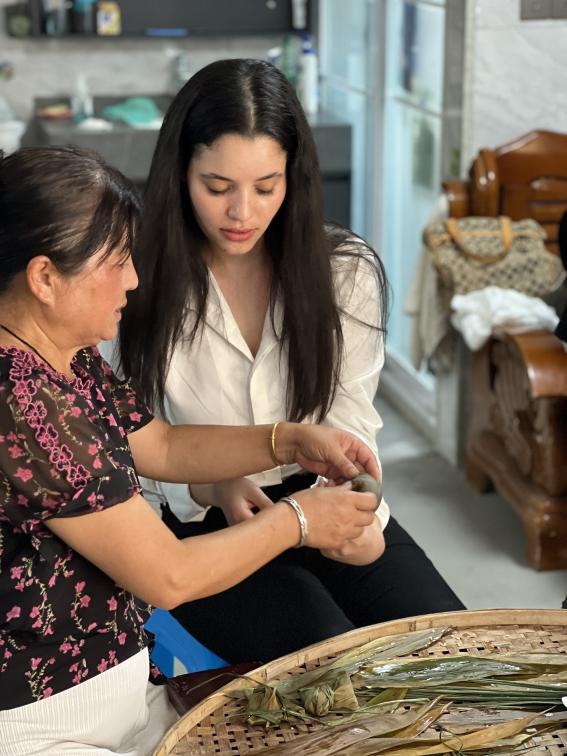 在微美术馆,我校留学生深刻感受艺术与乡村的碰撞,亲手包黄金粽、学棕编技艺体验传统民俗。