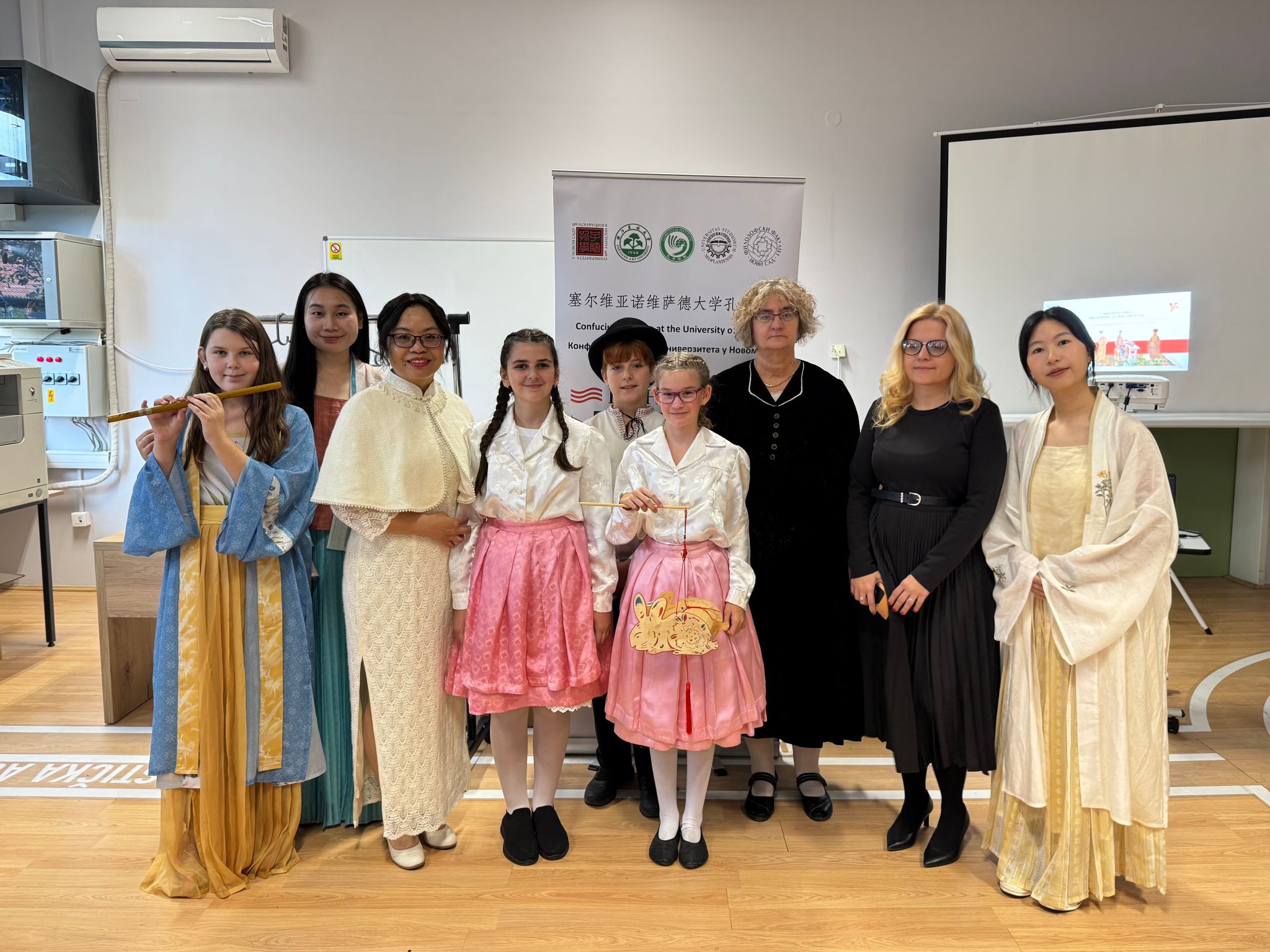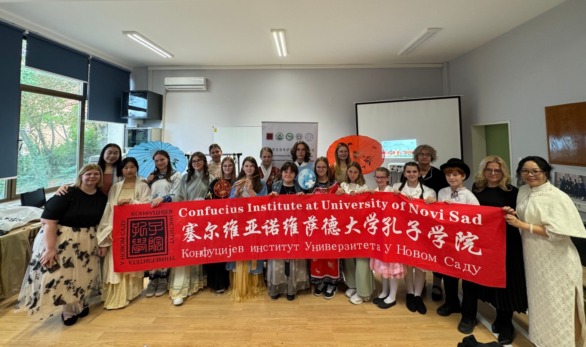 当地时间10月7日,诺维萨德大学孔子学院教学点佩特罗·库茨米亚克学校(Petro KuzmjakSchool)举办“衣冠相连·中塞共美”中塞传统服饰文化交流活动。百余名师生齐聚一堂,共同见证汉服与塞尔维亚传统服饰的精彩对话。当地媒体进行了现场采访和报道。