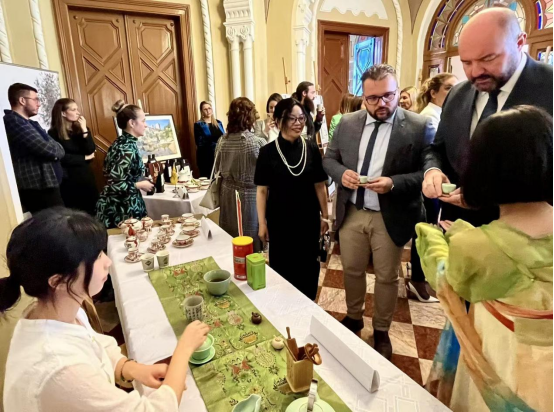 本次活动旨在以茶为媒,纪念首位记录中塞文化交流的萨瓦·弗拉迪斯拉维奇(Sava Vladislavić)伯爵。活动首先上演了以萨瓦伯爵为灵感的歌剧选段,歌剧之后展演了中国和塞尔维亚两国茶文化的碰撞历史。在这特殊的文化空间里,诺大孔院的教师受邀进行茶艺展示,并邀请在场嘉宾在茶香四溢中感受不同文化的味觉表达。斯雷姆斯基卡尔洛夫茨镇长德拉岑·朱尔季奇(DraženĐurić),对中国茶的醇厚香气与深厚文化底蕴赞不绝口,并感谢诺大孔院对本次活动的大力支持。