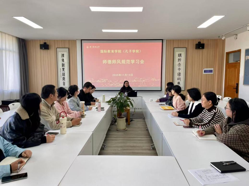 为深入贯彻落实新时代教师队伍建设要求,系统推进师德师风建设走深走实,11月13日,国际教育学院组织召开师德师风规范专题学习会,学院全体教师参加学习,以学促思、以思促行,共绘立德树人新图景。
