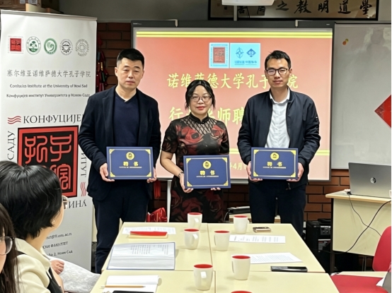 活动现场还举行了诺维萨德大学孔子学院行业导师聘任仪式,聘请中国路桥塞尔维亚分公司所属项目的负责人于道勇、许建伦、张凯为诺维萨德大学孔子学院首批行业导师。诺大孔院中方院长陈秀表示,此次行业导师的聘任是贯彻落实年初双方签署的“中文+”品牌共建合作协议的举措之一,有利于进一步培育双方合作成果。行业导师代表张凯感谢诺大孔院的信任和认可,表示将坚守初心,履职尽责,持续助力中文教育与文化传播,推动中塞人文与经贸交流更深发展。