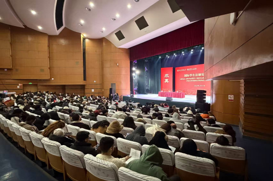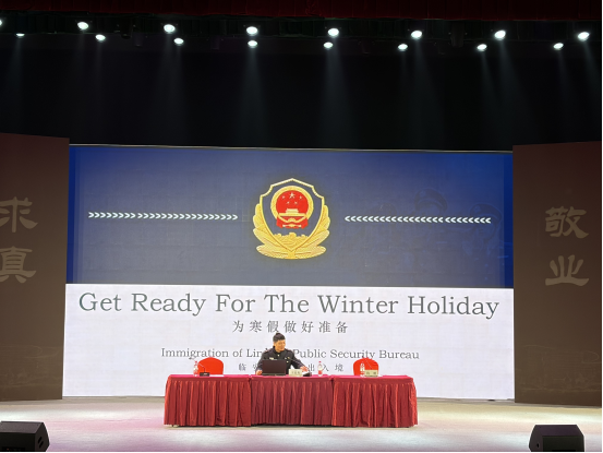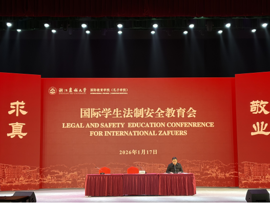 为贯彻落实省教育厅和学校寒假工作相关部署,切实做好寒假期间留学生安全教育管理工作,1月17日上午,国际教育学院组织召开2026年寒假留学生安全教育会议。院长赵有华,副院长钱潮、徐丽君,杭州市公安局临安分局警官王益龙,学生工作办公室全体辅导员及在校留学生500余人参加了会议。