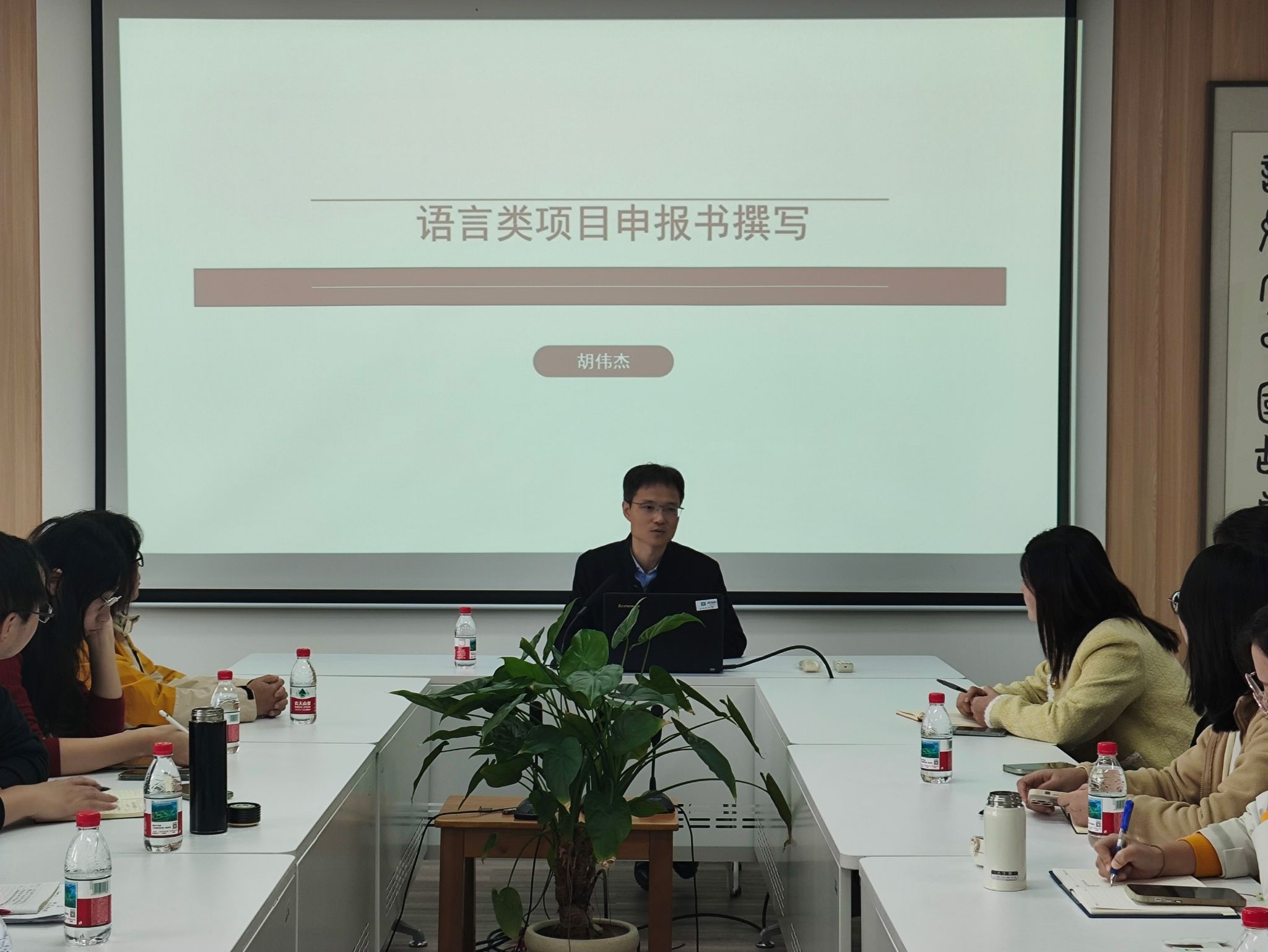 胡伟杰是浙江师范大学博士生导师、博士后合作导师,在第二语言习得、跨文化交际等研究领域建树颇丰,并拥有丰富的国家级项目申报与评审经验。讲座中,他紧密结合国家社科基金等高级别科研项目的立项规律与评审导向,对项目申报的关键环节进行了系统深入的解析。整场讲座内容翔实,“干货”满满,既有宏观的视角指引,也有具体而微的实操建议。